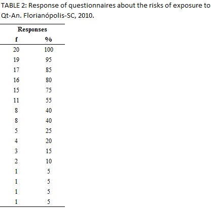 In relation to the risks they are exposed to contact with the chemotherapy, the presented data refer to what was raised in the questionnaires, as ordered in Table 2.