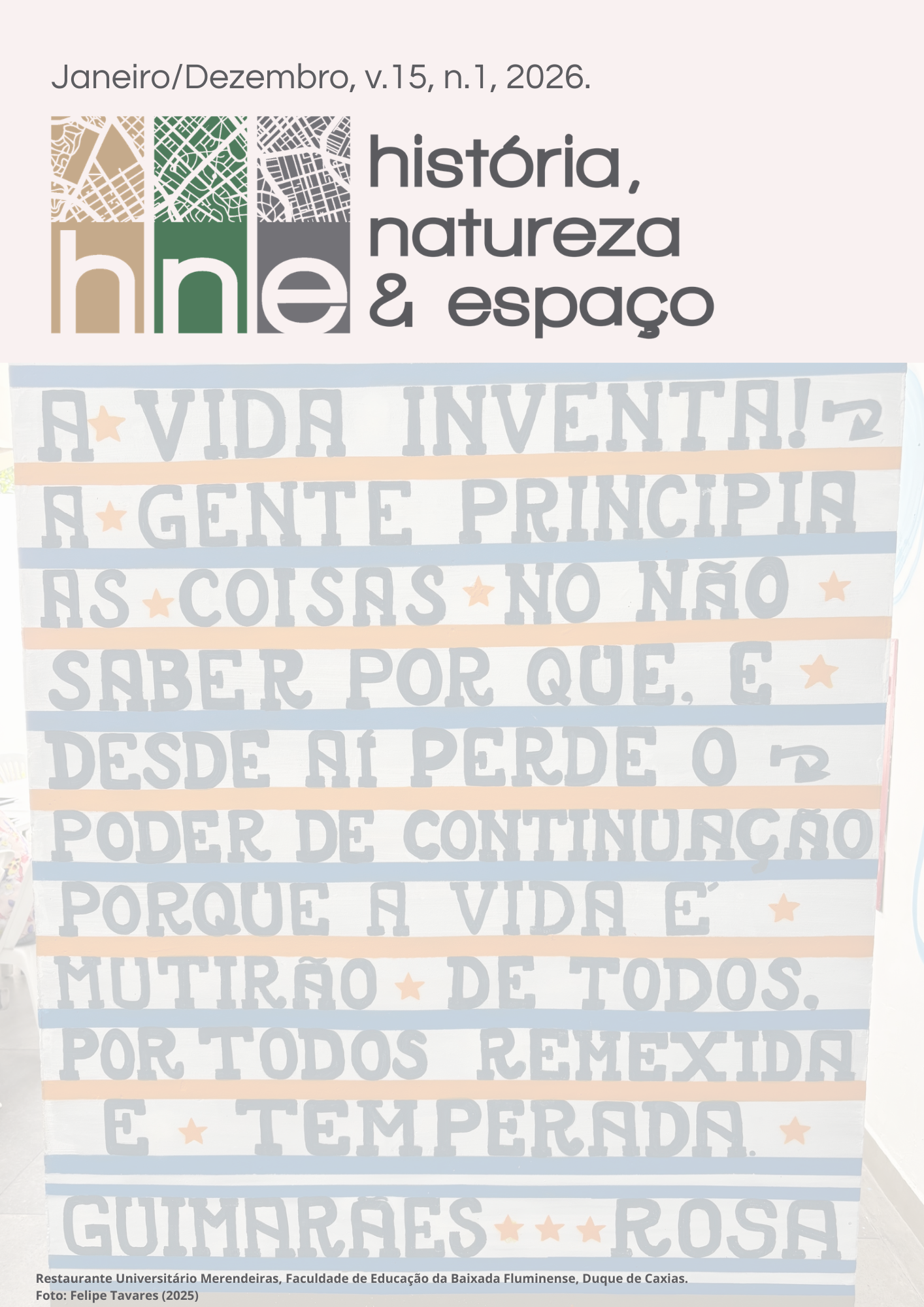 v. 15 n. 1 (2026)A partir de 2026, a Revista História, Natureza e Espaço adotou a periodicidade anual para a publicação de artigos, resenhas, notas e relatos de experiência. Deste modo, haverá uma edição por ano, na modalidade de publicação continuada.