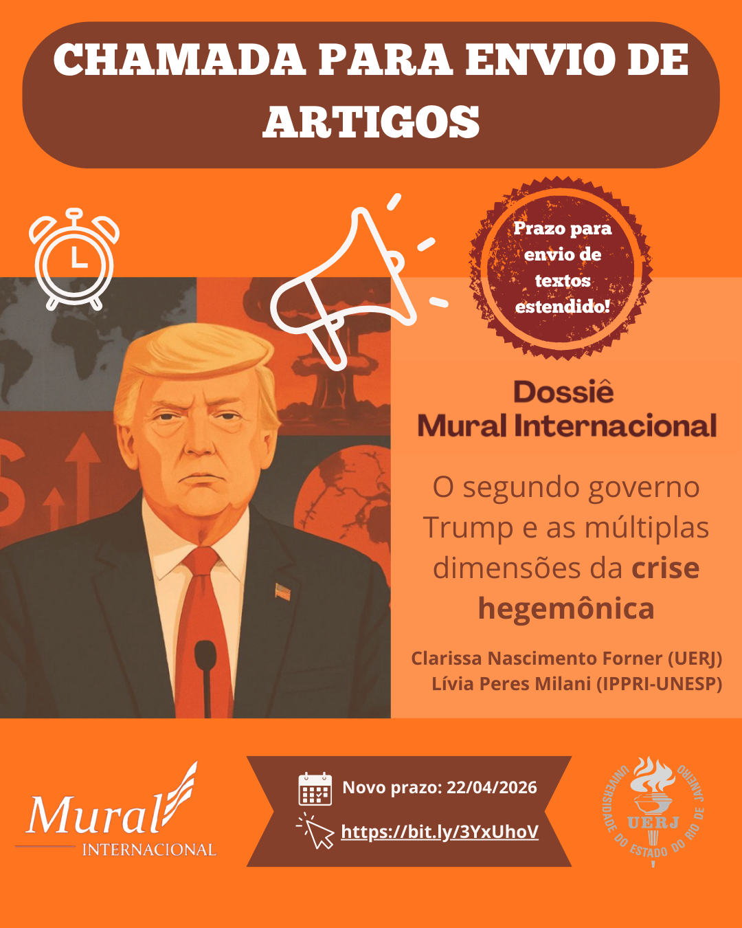 A revista Mural Internacional abre chamada para envio de artigos inéditos, em espanhol, inglês e português para o dossiê “O segundo governo Trump e as múltiplas dimensões da crise hegemônica”.
